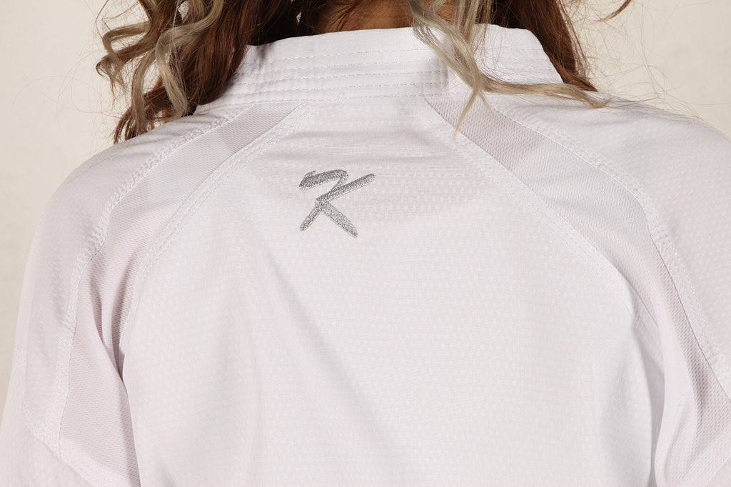 Experience competition-ready performance with the Karate-Ka uniform, engineered for serious athletes. This professional-grade ensemble combines 97% polyester and 3% elastane construction with advanced Climacool technology and DryTouch fabric on critical zones for superior breathability and moisture management. The 175 gr/m² weight delivers optimal durability without excess bulk, while triple-thread stitching ensures lasting integrity through rigorous training and competition. A 5 cm elastic waistband and reinforced fly thread provide secure, comfortable fit, and the gray gilded Kihon logo embroidery adds refined detail. Zero shrinkage guarantees consistent sizing, making this uniform ideal for national-level competition without requiring alterations.